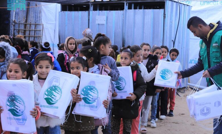 وزع مركز الملك سلمان للإغاثة والأعمال الإنسانية أمس ملابس شتوية على الطلاب في المدارس والمواقع التعليمية في منطقة مواصي خان يونس جنوب قطاع غزة، ضمن الحملة الشعبية السعودية لإغاثة الشعب الفلسطيني الشقيق في القطاع.