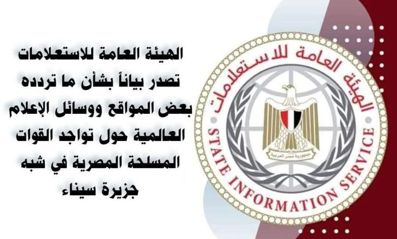 أصدرت الهيئة العامة للاستعلامات المصرية بياناً بشأن ما تردده بعض المواقع ووسائل الإعلام العالمية، حول تواجد القوات المسلحة المصرية في شبه جزيرة سيناء.