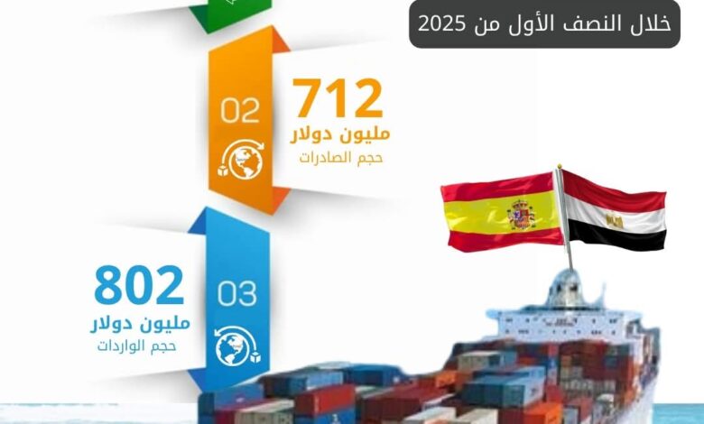 أكمل القراءة »أعلن الجهاز المركزي للتعبئة العامة والإحصاء وصول قيمة التبادل التجاري بين مصر وإسبانيا إلى 1.5 مليار دولار خلال النصف الأول…