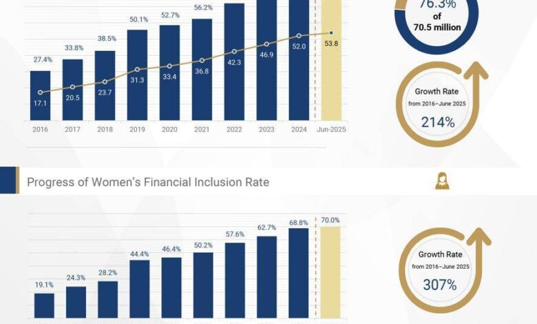 أكمل القراءة »أظهرت المؤشرات الرئيسية للشمول المالى، التى أصدرها البنك المركزى، ارتفاع عدد المواطنين الذين يمتلكون ويستخدمون حسابات نشطة تتيح لهم إجراء…